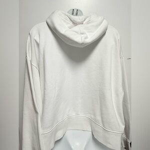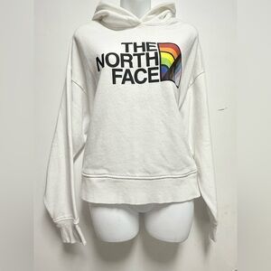 White hoodie with a bold multicolor logo. Ideal for everyday comfort.