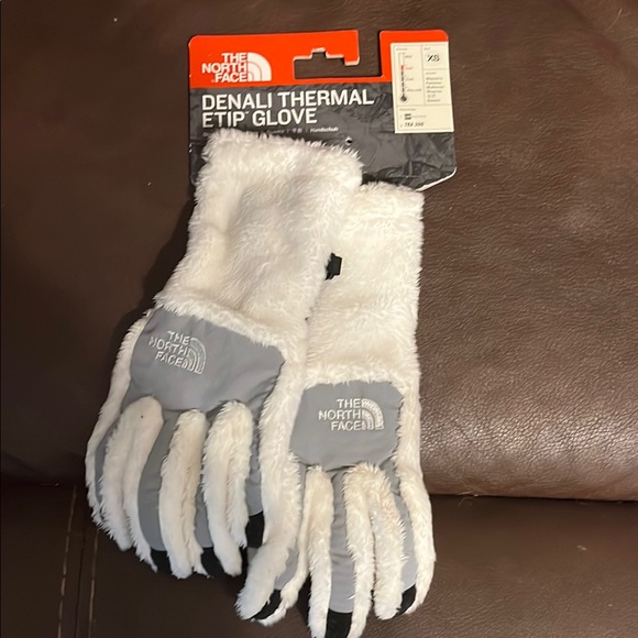 Experience warmth and functionality with The North Face thermal gloves, crafted from plush white material with durable gray grip sections. Ideal for cold weather, these gloves offer superior insulation and enhanced grip for outdoor adventures.
