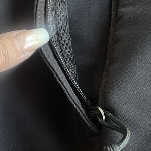 Fabric: Main body 92% polyester, 8% elastane; pocket lining 100% polyester (per tag)