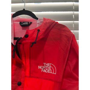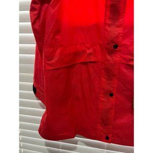 Elevate your style with this The North Face Women's Outline Windwall Hoodie Jacket in Horizon Red. Perfect for travel, workwear, or casual outings, this mid-length coat with long sleeves features a softshell fabric type, making it lightweight and wind-resistant. The relaxed fit with a full zip closure and hooded design adds to its functionality.