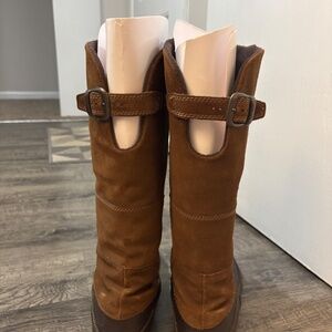 The North Face tall boots, rubberized on the bottom for rain and light snow. Very warm, zip up, calf expander buckle on the back. Women’s 9.5. Haven’t worn them in a while so getting rid of them, they are excellent boots!!