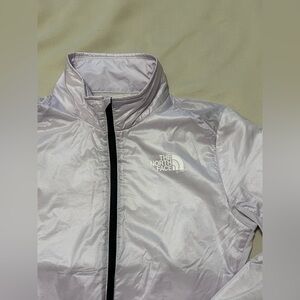 Excellent condition jacket. Super lightweight and breathable. Partly see through as seen in the photos. Color is lavender fog.