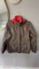 Durable olive raincoat with coral interior. Ideal for rainy days. Lightweight and breathable.