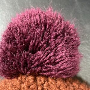 The North Face Woman’s Plum and Rust Ombre’ Beanie Hat With Pom Pom. OSFA