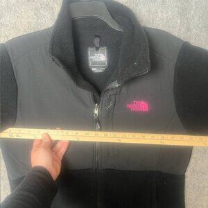 The North Face Women Size Large Pink Ribbon Denali 2 Full Zip black Jacket. Normal wear see pictures for more details and measurements