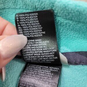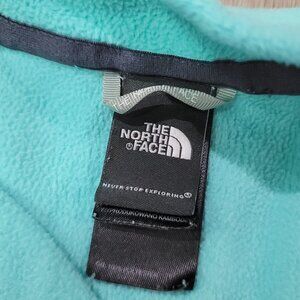 This fleece pullover by The North Face is ideal for outdoor activities and casual wear. Its light blue hue offers a vibrant touch, while the quarter-zip design provides easy ventilation. Crafted from polyester, it ensures warmth and comfort. The medium size fits most women comfortably, making it a versatile addition to any wardrobe.