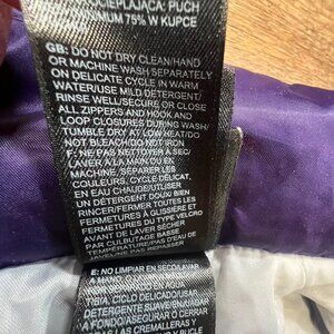 beautiful purple color, zip front, zip pockets, embroidered logo on front and back