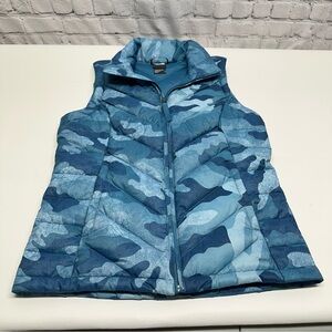 The North Face Womens Alpz 2.0 Blue Camo Mallard Down Puffer Vest 550 Sz small