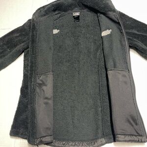 Soft black fleece jacket by The North Face. Features a zip front and practical zip side pockets.