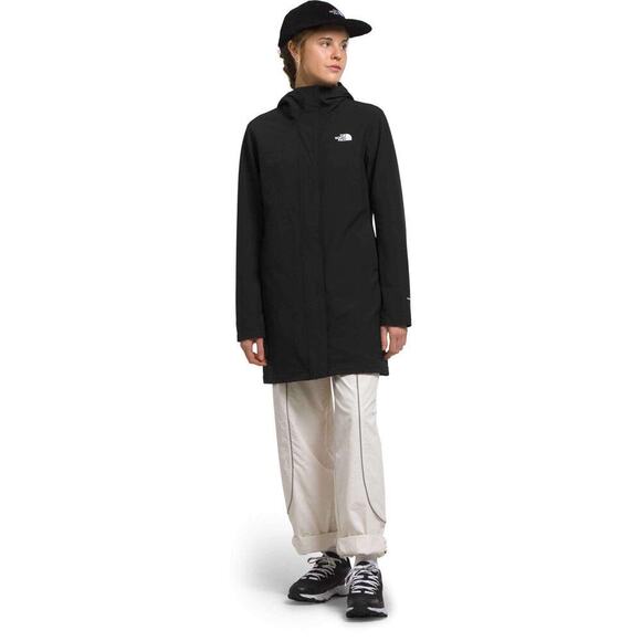Stay warm and stylish with this The North Face women’s parka, size Large. Features durable outer shell, insulated quilted interior, and full-length coverage perfect for cold weather. Originally designed with a removable tie/belt (not included). Zipper front closure, multiple pockets, and classic black color make this coat a versatile winter essential.