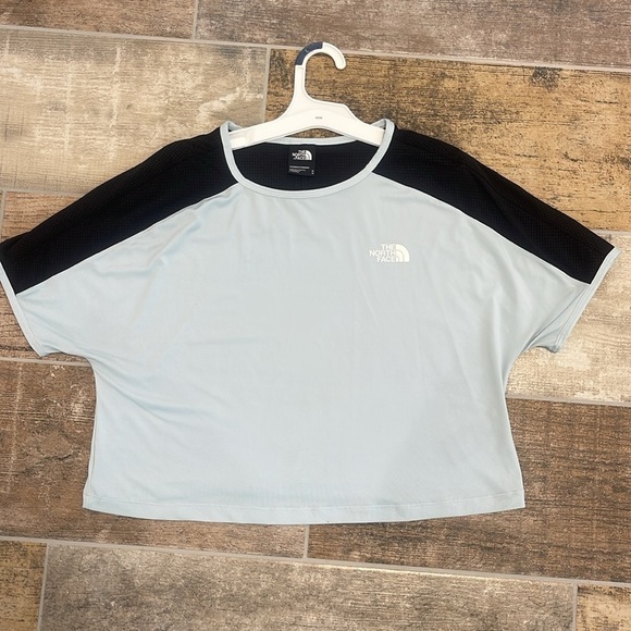 The North Face Women's Blue & Black Cropped Short Sleeve T-Shirt Tee M