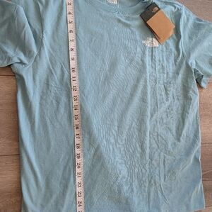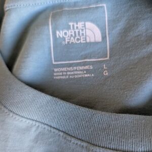 The NWT North Face T-shirt in size L for women is a light blue pullover with short sleeves, perfect for casual occasions. This regular fit T-shirt from The North Face brand is ideal for wearing in all seasons .Machine washable and featuring a casual sleeve, this basic women's T-shirt is a stylish and comfortable addition to any wardrobe.