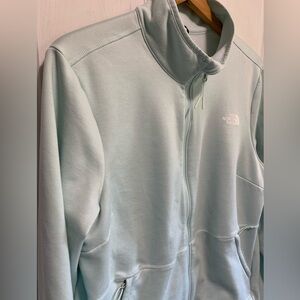 The North Face Women's Canyonlands Zip Jacket in Skylight Blue White Heather 1X is a versatile and stylish mid-length jacket perfect for travel, casual wear, and work. Made of polyester with a fleece lining, this jacket is lightweight and packable, making it ideal for all seasons. Featuring a solid color pattern, zip closure, and various accents like the logo, this basic jacket is designed with collared, stretchy, and pocket-friendly features for your convenience. Stay warm and stylish with this high-quality The North Face jacket, perfect for the winter, fall, and spring seasons.