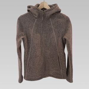 The North Face Women's Crescent Full Zip Hoodie. Heathered purple. Minor pilling at cuffs. Stock photo shows fit, please see all photos for actual item. Thank you!