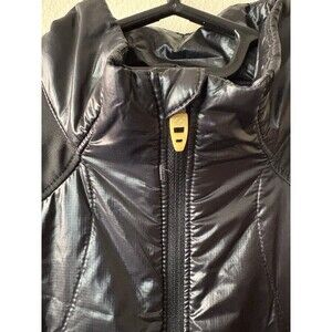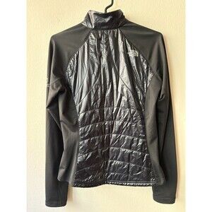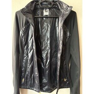 For sale is The North Face Women's Flight Series Jacket in Black. Constructed of Pertex Quantum Fabric with a front insulated panel made from Primaloft, this lightweight jacket features contrast sides and sleeves, a full zip, and two zippered pockets. The long sleeves have thumb holes. The North Face logo is on both the front and the back of the jacket, and the back of the left sleeve says Flight Series. Main body is 100% Nylon, side body is 88% Recycled Polyester and 12% Elastane. Both the Primaloft and Pertex Quantum tags are present. This jacket is in excellent pre-owned condition, other than one issue: the zipper pulls on the main zipper and the zippered pockets have yellowed (see closeups in photos 3-6). Size Small with the below approximate flat lay measurements. Please compare the measurements to an item that fits you well to ensure proper fit.