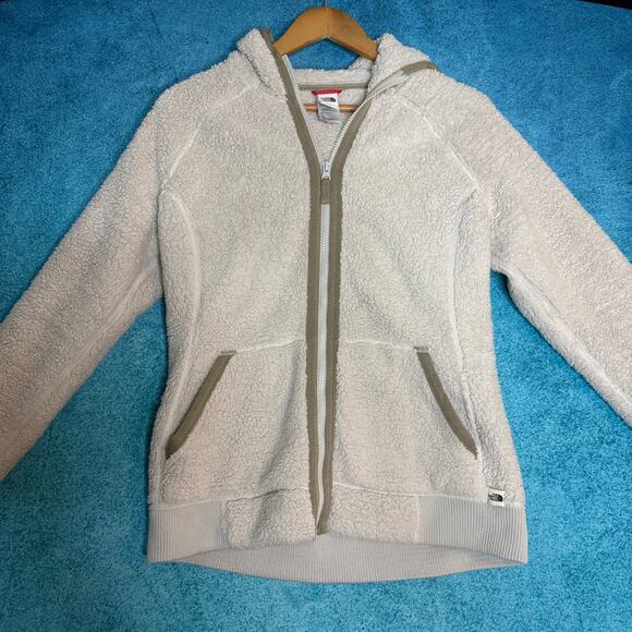 The North Face Women’s Full Zip Fleece Jacket Coat Size L Off White Polyester
