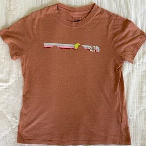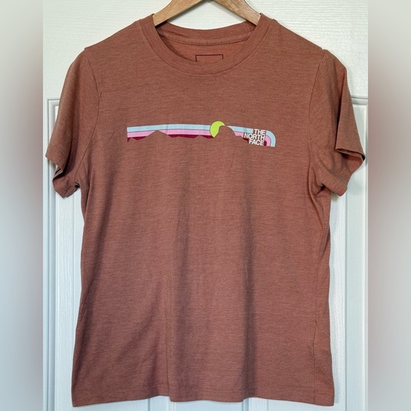 🌄 The North Face Women’s Graphic Tee Large Rust Pink Retro Mountain Logo Shirt