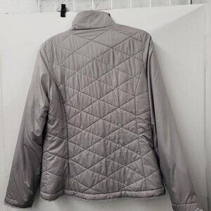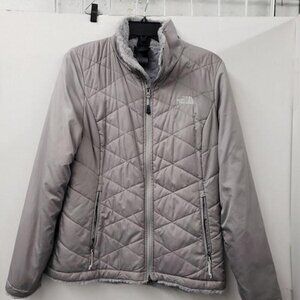 Stay warm and comfortable in this gray jacket from The North Face. The lightweight, insulating material will keep you cozy without feeling weighed down. Perfect for outdoor adventures or casual outings. Features two front zipper pockets.