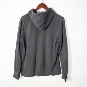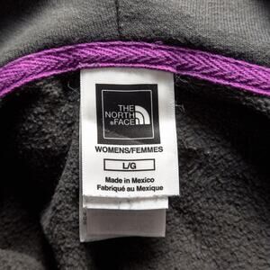 The North Face women’s hoodie in soft gray fleece with a vibrant rainbow logo and matching purple drawstring. Women’s size large. The relaxed cotton blend gives it a cozy drape, blending barbiecore colorplay with everyday athleisure comfort. The bright logo pops against the washed base, striking that perfect balance between fun and functionality.