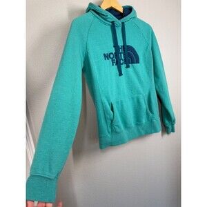 The North Face Womens Hoodie Size S Teal Athletic Sweatshirt Turquoise Navy EUC