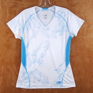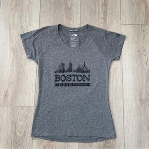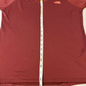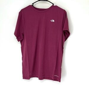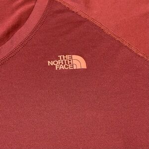 Women’s The North Face short‑sleeve performance tee in a rich maroon color.