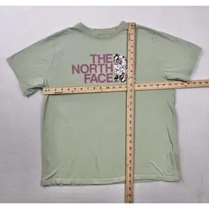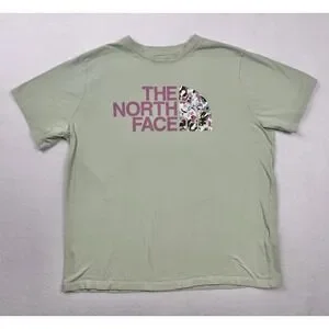 The North Face Womens Large Green Floral Logo T Shirt Outdoor Hiking