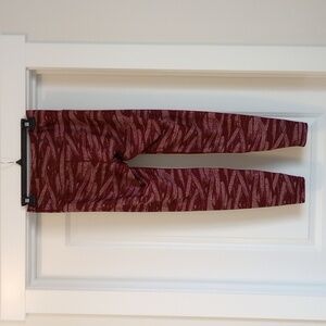 These North Face leggings are red and have a zipper on the back. They are in really good condition.