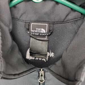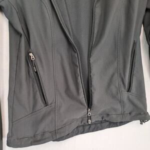 * Features: Black softshell fabric, full zipper closure, mock neck collar, embroidered logos, pockets, elastic cuffs, wind-resistant, interior hem cinch-cord