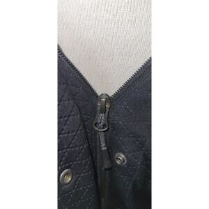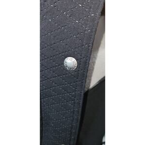 The North Face Womens Medium Black Diamond Quilt Pattern Hooded Snap Zip Jacket. Very good overall condition. This has both a zip and snap button closure. The hood does not have a drawstring closure. Zippered hip pockets and a soft light fleece interior. Please look at all pictures and ask any questions before purchase. Please see measurements for fit.