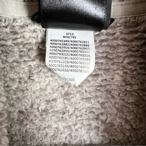 Secure-zip hand pockets. Embroidered logo on left chest and back-right shoulder. Believe color to be FLAX/BLEACHDSND. Size small.
