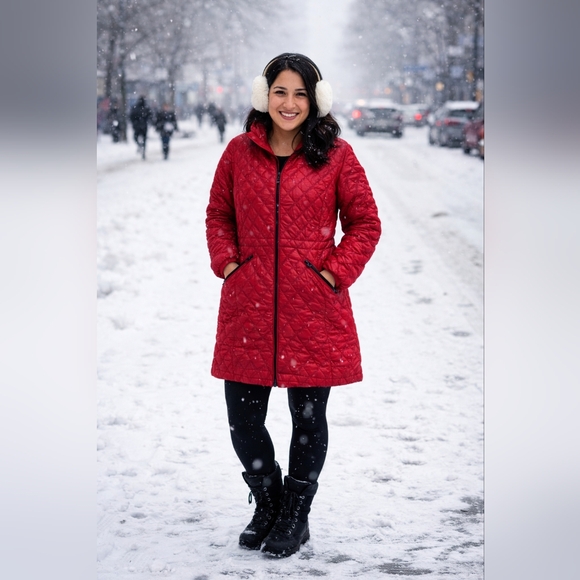 Bold red jacket by The North Face. Ideal for outdoor adventures. Lightweight, very thin like a rain coat, yet warm. Pre-loved and in good condition.