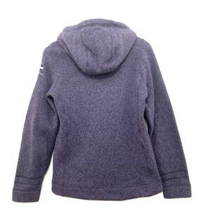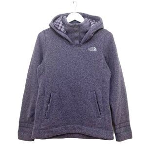 Soft plaid flannel lines the hood and pockets of a heathered, sweater-knit fleece pullover for an extra-cozy touch.