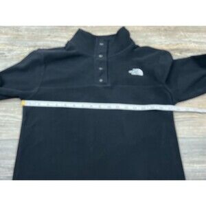 Stay warm and comfortable during your outdoor activities with this black mock neck sweatshirt from The North Face. Made of lightweight polyester fleece fabric, it features a solid pattern with long sleeves and snap closure. Perfect for winter, fall, and spring seasons, this regular fit sweatshirt is suitable for walking, hiking, running, and jogging. The sweatshirt is designed for women and comes in size S. It is a pullover style sweatshirt with a glacier snap design. The North Face brand ensures high quality and durability. Get ready to enjoy your outdoor adventures with this warm and cozy sweatshirt. Excellent condition!