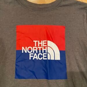 The North Face women's size small red, whit, and blue logo graphic t-shirt. In excellent condition from a smoke free home.