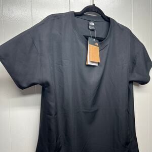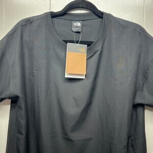 The North Face women's black activewear top. Round neck. Short sleeves. Side pocket with elastic drawstring. Lightweight. Relaxed fit. New with tags. No stains, tears or holes.
