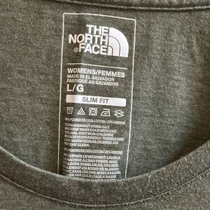 The North Face Women’s Green Slim Fit Pocket TShirt. Polyester/cotton/viscose. Chest pocket has an embroidered bear. Size Large