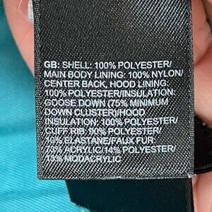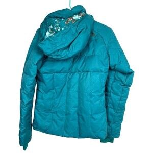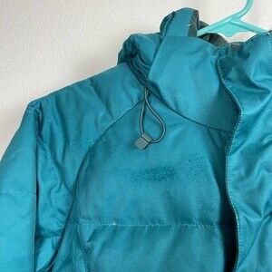 Teal warm hooded zip up goose down coat. Has some stains/wear please see all photos for detail. Zipper works great. From a smoke free home size XS.
