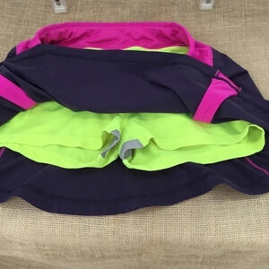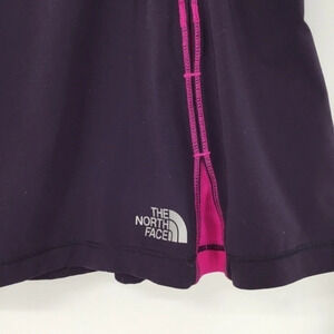 The North Face running/tennis skort. This skirt has reflective features for nite. Also features zipper outer pocket & inner lining with shorts.