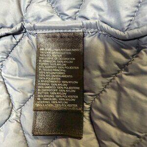 Features: Full-zip, attached hood, quilted lightweight warmth, zip hand pockets, packable