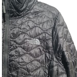Description: The North Face Women's ThermoBall Jacket in Black, size S, excellent condition. Features full front zipper, internal chest pocket, hand pockets with zipper, cinchable hem, packable into pocket, bottleneck quilt pattern for minimized cold spots and improved durability, slim fit, 13 g PrimaLoft ThermoBall synthetic insulation, 100% nylon fabric with DWR finish, perfect for lightweight cold-weather wear. Smoke-free home, fast shipping, bundle to save!