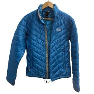 The North Face Women's Thermoball Jacket in size small is a stylish and functional outerwear piece designed for cold weather. Made with polyester material, this puffer jacket features a sleek design in a beautiful blue color. Perfect for outdoor activities or everyday wear, this jacket by The North Face offers both comfort and warmth with its Thermoball technology, making it a practical and fashionable choice for any woman's wardrobe.