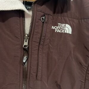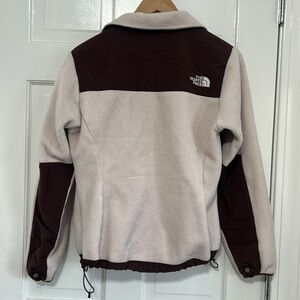 Stylish utility jacket by The North Face. Features a brown upper and cream lower. Perfect for outdoor adventures.