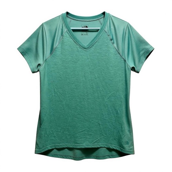 The North Face Women's V Neck Short Sleeve FlashDry T Shirt Teal Green Size L
