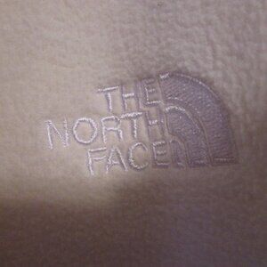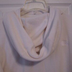 The North Face women's off-white pullover lightweight hoodie. 2 front zip pockets, long sleeves. 100% polyester. Measurements are pit to pit 25", length total approx. 43". In good pre-owned condition.
