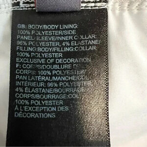 Stylish puffer jacket by The North Face. Features a white quilted front and gray sleeves. Perfect for cold weather.