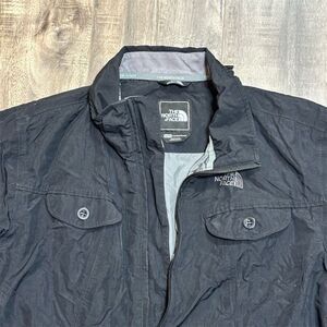 Keywords: The North Face, women's jacket, black jacket, fall jacket, casual wear, lightweight, breathable, full zip, adjustable cuffs, embroidered logo, pre-owned, XL, nylon jacket