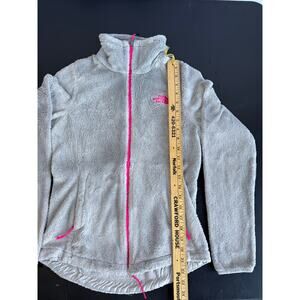 The North Face Women’s XS Gray Fuzzy Fleece Jacket Full Zip Pink Accents Soft