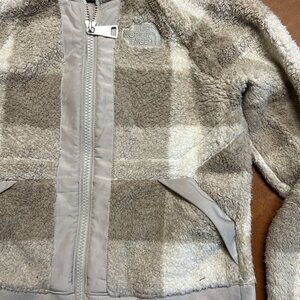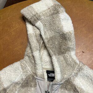 The North Face Women's XS Tan Plaid Full Zipper Hooded Sherpa Fleece Jacket #241