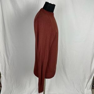 Solid Rust Red Wool/Cotton Blend The North Face Logo Knit Ribbed Crew Neck Sweater.
