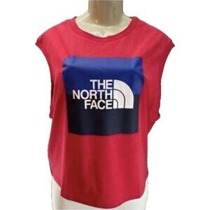 The North Face XL Red/Blue Logo Graphic Crew Cotton Waist-Length Muscle Tee